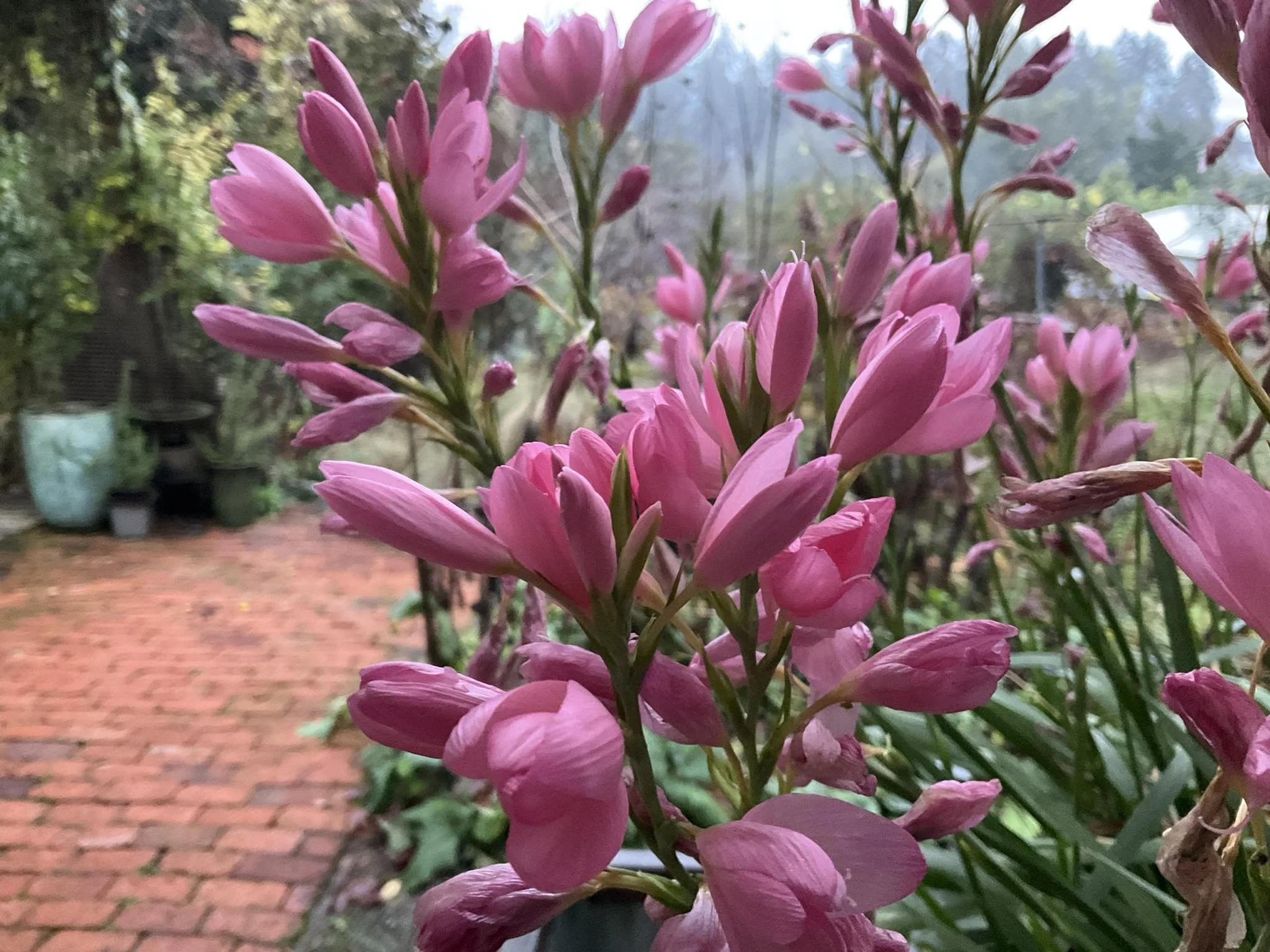 I'm thankful today for our pink, blooming African lilies Schizostylis Giant Pink!